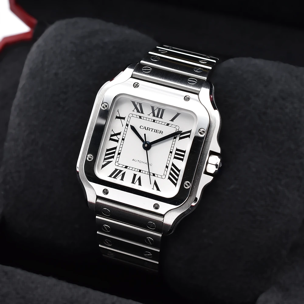 For Sale is an excellent example of the Cartier Santos De Cartier Medium, reference WSSA0029.