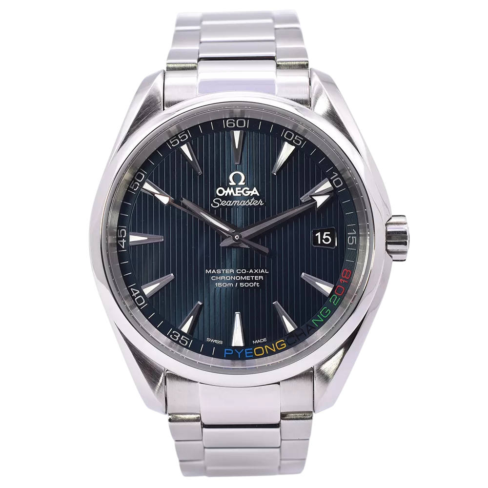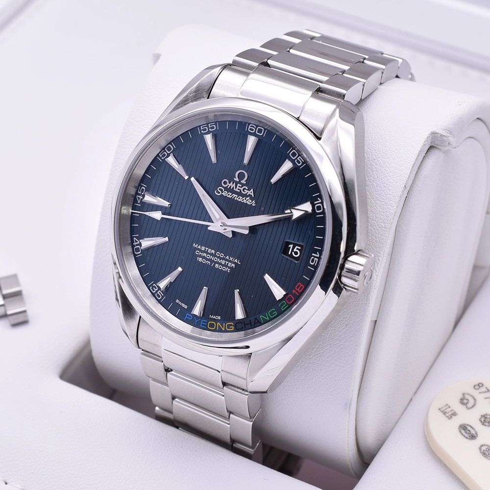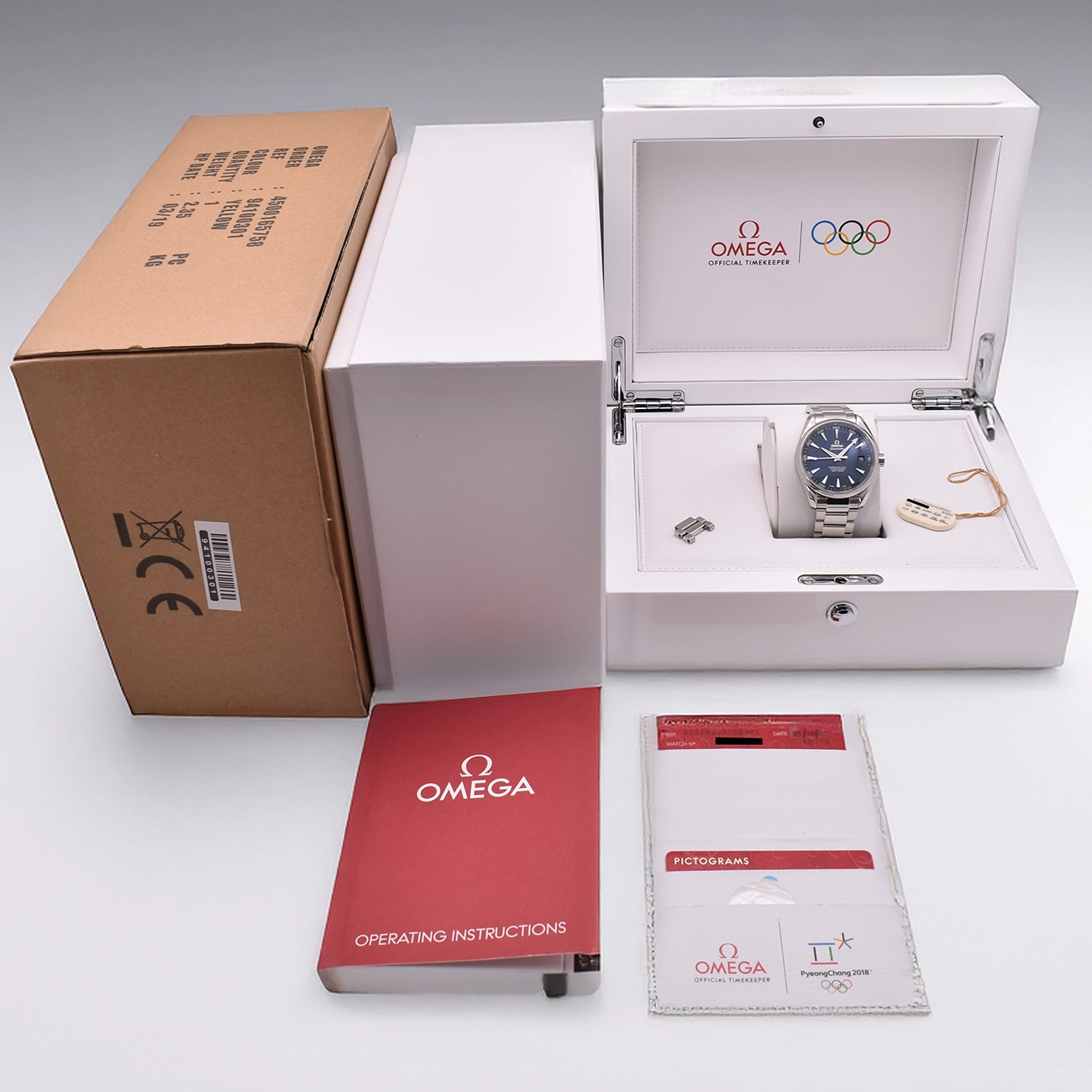 For sale is an excellent example of the Omega Seamaster Aqua Terra 150m PyongChang Olympics Edition, reference 522.10.42.21.03.001.