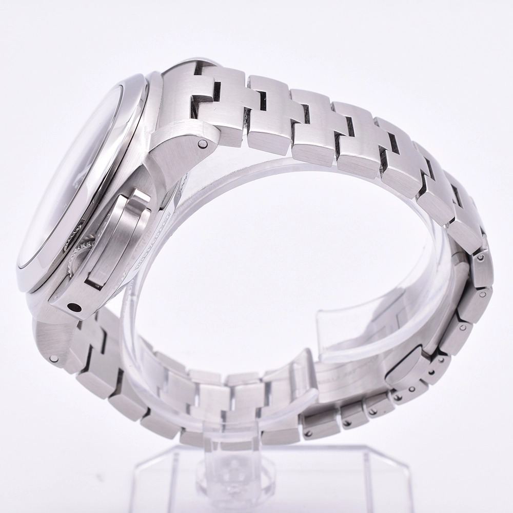 With a brushed 44mm steel case and polished bezel, this model features a black GMT dial, small-seconds and date. It's fitted to its OEM brushed steel bracelet with butterfly deployant clasp.