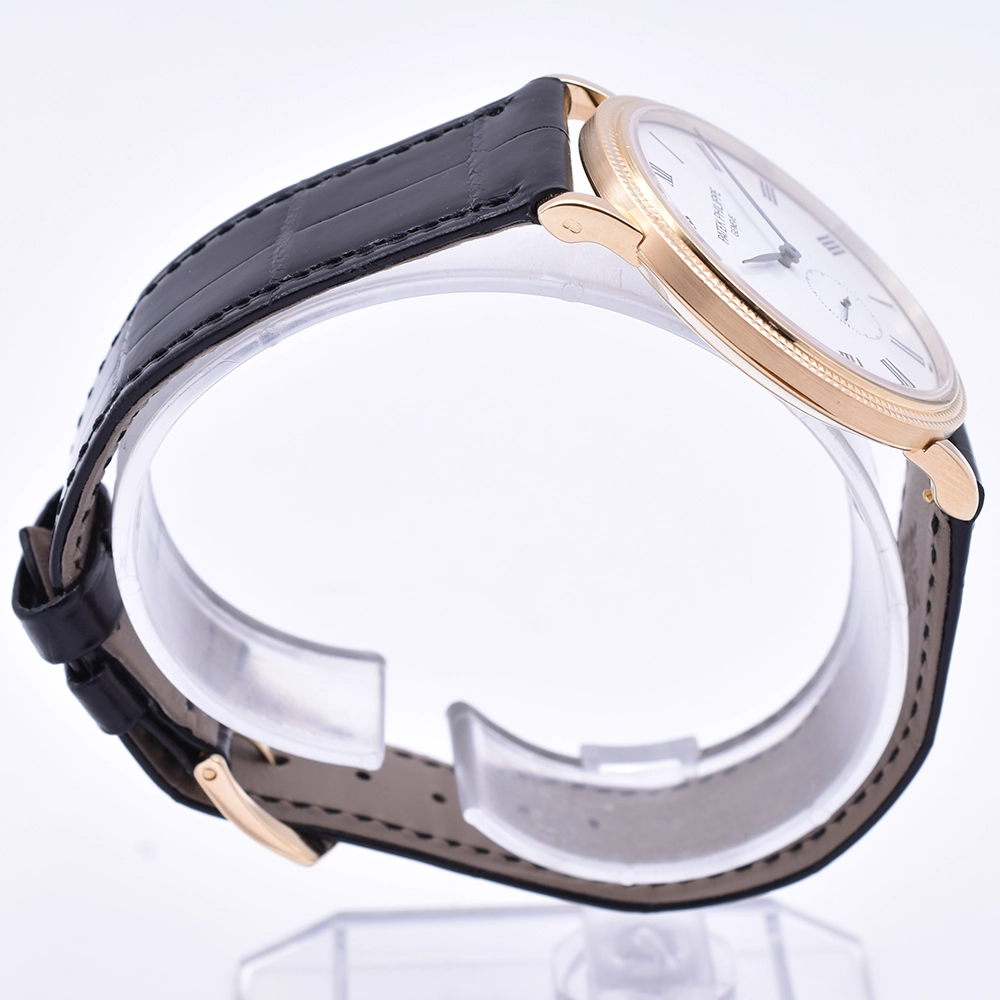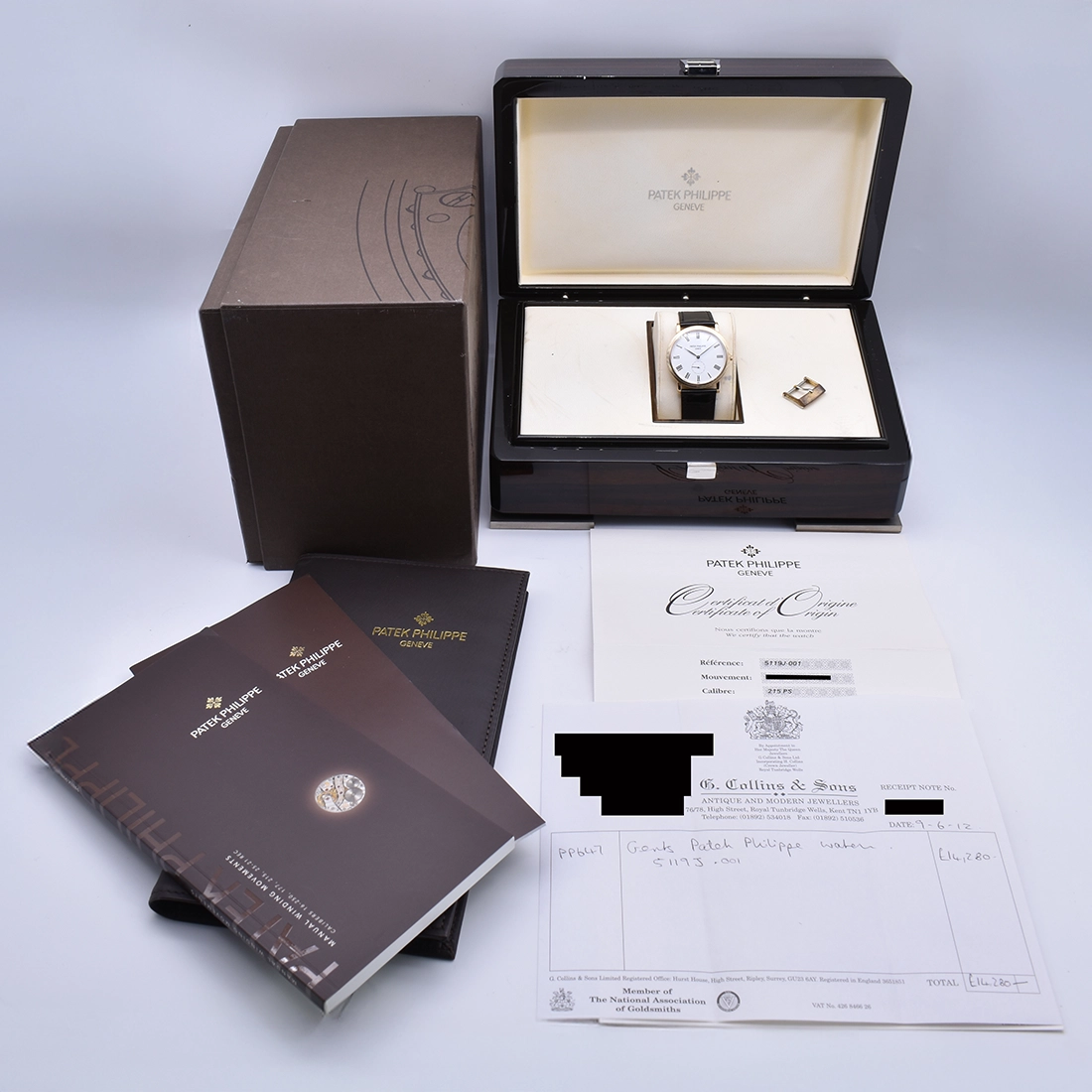 Complete with original box & papers, original purchase receipt from 2012, this model remains in excellent condition throughout showing light signs of wear, having been fully serviced in November 2025. It has also been fitted with a new OEM black leather alligator strap from Patek Philippe for £480. A video condition review is available upon request. 24 month warranty included.