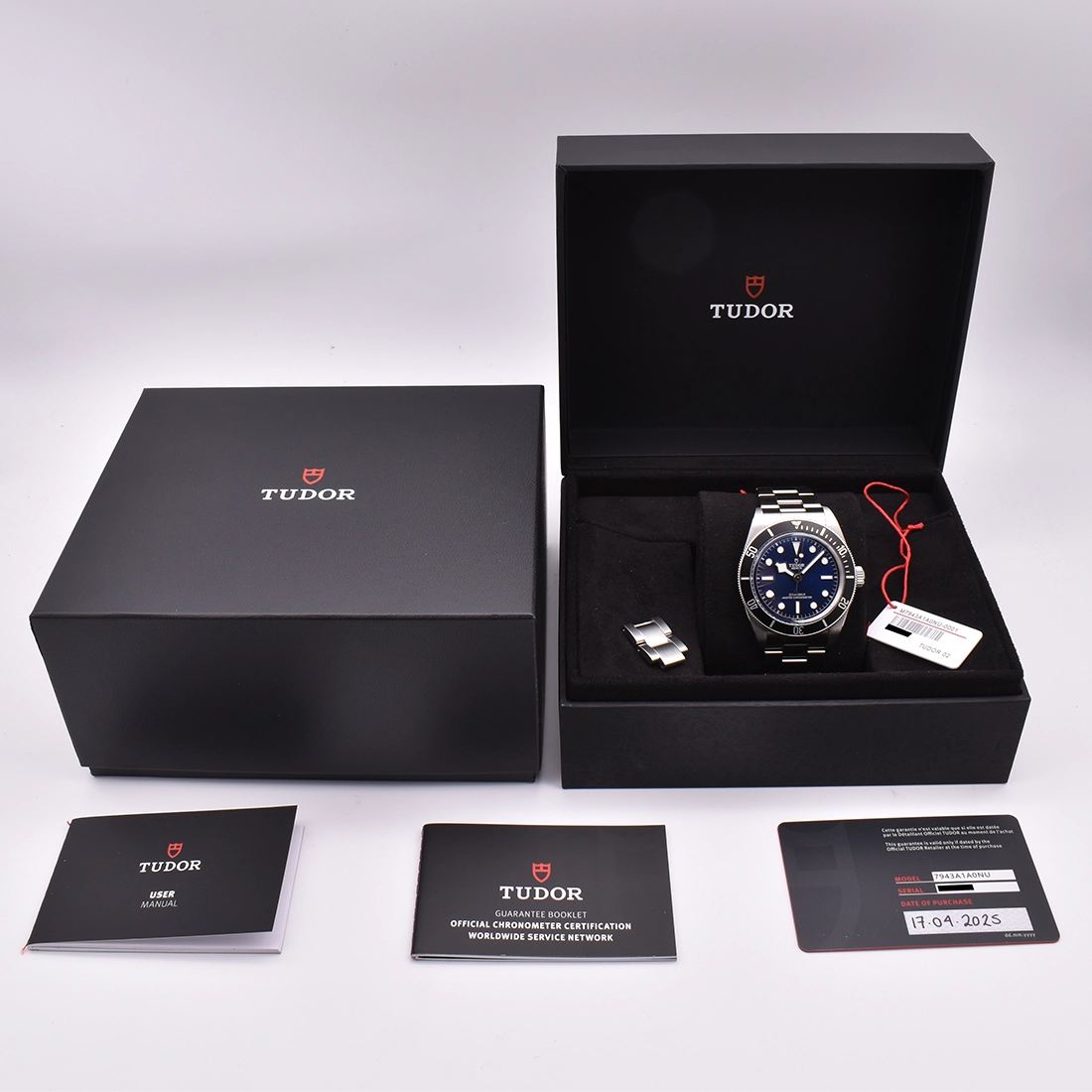 With a RRP of £4,010, this 2025 model features a 43mm steel case with a rotating aluminium black bezel and a blue dial, with the OEM stainless steel bracelet with TUDOR “T-fit” clasp.